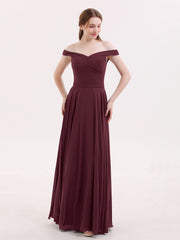 Off Shoulder Full Length Chiffon Dress Cabernet