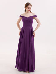 Off Shoulder Full Length Chiffon Dress Grape