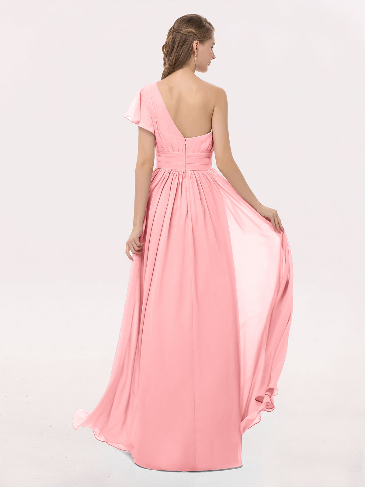 One Shoulder Flutter Sleeve Chiffon Gown Flamingo
