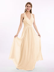 V Neckline Chiffon Dress with Bow Straps Peach Plus Size
