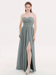 Strapless Sweetheart Neck Bridesmaid Dress with Slit Steel Grey Plus Size