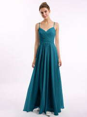Spaghetti Straps Chiffon Dress with Sweetheart Neck Ink Blue Plus Size