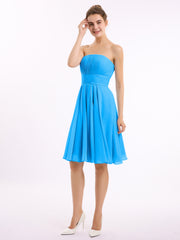 Straight Across Strapless Short Bridesmaid Gown Ocean Blue Plus Size