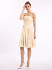 Straight Across Strapless Short Bridesmaid Gown Peach