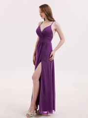 Sexy Deep V Neck Dress with Slit Grape