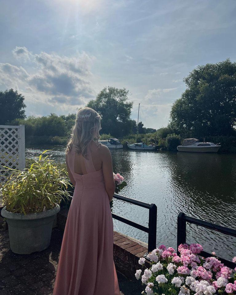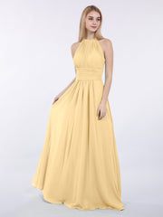 Halter Chiffon Maxi Dress of Bridesmaid Gold