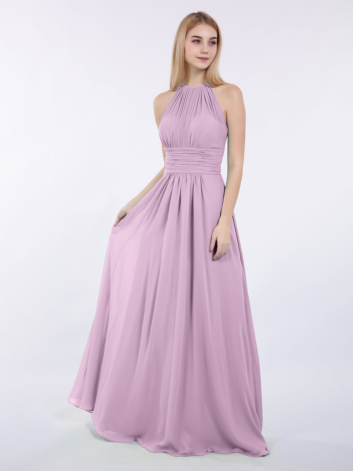 Halter Chiffon Maxi Dress of Bridesmaid Wisteria