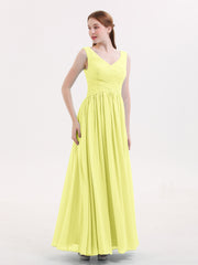 V Neck Maxi Chiffon Dresses with Ziper Back Daffodil Plus Size
