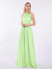 Illusion Neck Full Length Bridesmaid Dress Sage