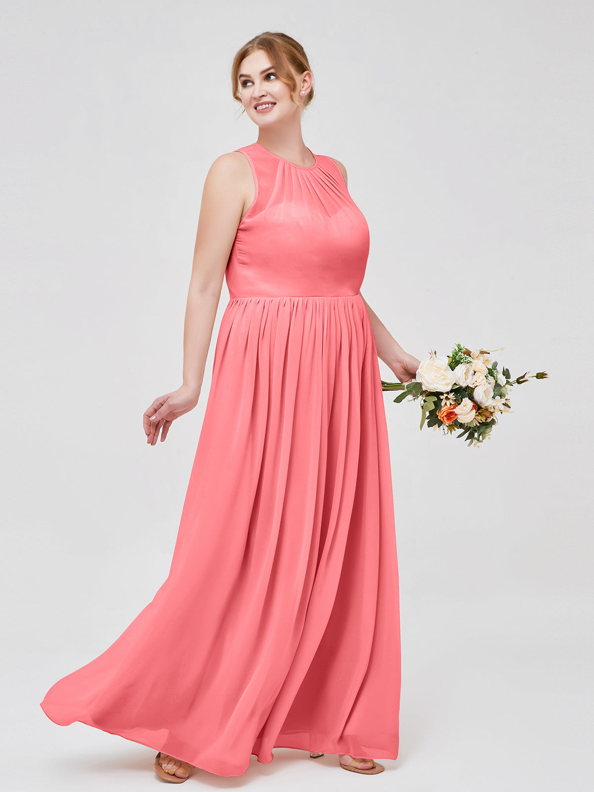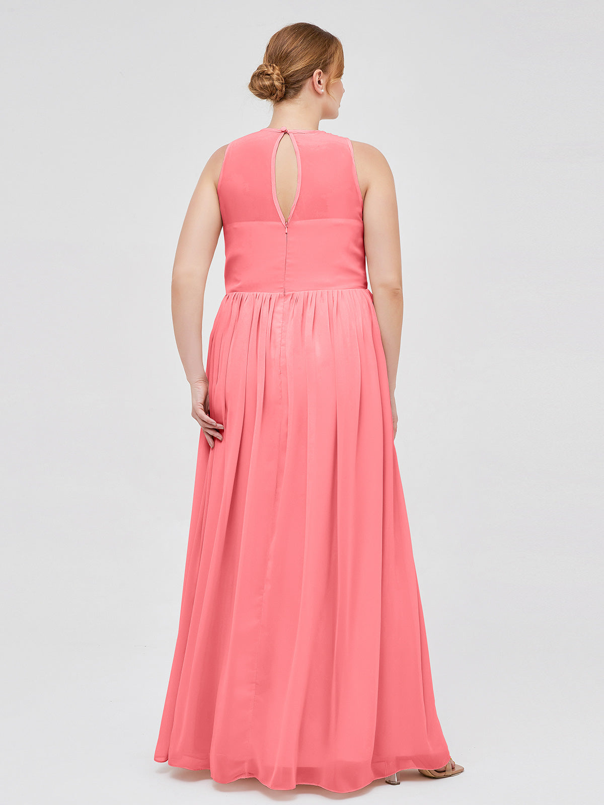 Illusion Neck Full Length Bridesmaid Dress Watermelon