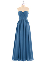 • It features soft, draping pleats with a strapless sweetheart neckline.
