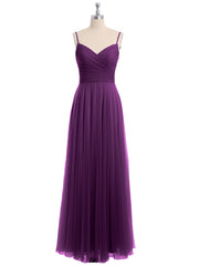 Spaghetti Strap Long Tulle Dress with Sweetheart Grape