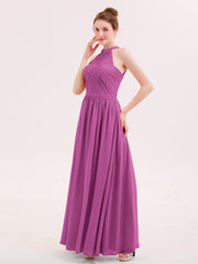 Halter Chiffon Long Bridesmaid Gown with Belt Orchid Plus Size