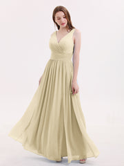 Double Beaded Strap Chiffon Dress with V Neck Champagne Plus Size