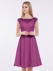 Chiffon and Lace Short Bridesmaid Gown Orchid Plus Size