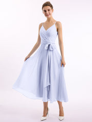 Spaghetti Strap T length Dress with Sash Bow Lavender Plus Size