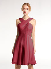 Cross Front Empire Waist Short Bridesmaid Dress Burgundy Plus Size