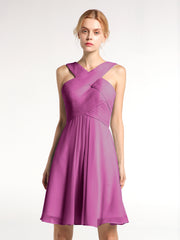 Cross Front Empire Waist Short Bridesmaid Dress Orchid Plus Size