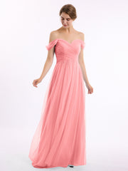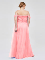 Off the Shoulder Sweetheart Neck Tulle Dress Flamingo
