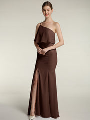One Shoulder Mermaid Dresses with Slit Chocolate Plus Size