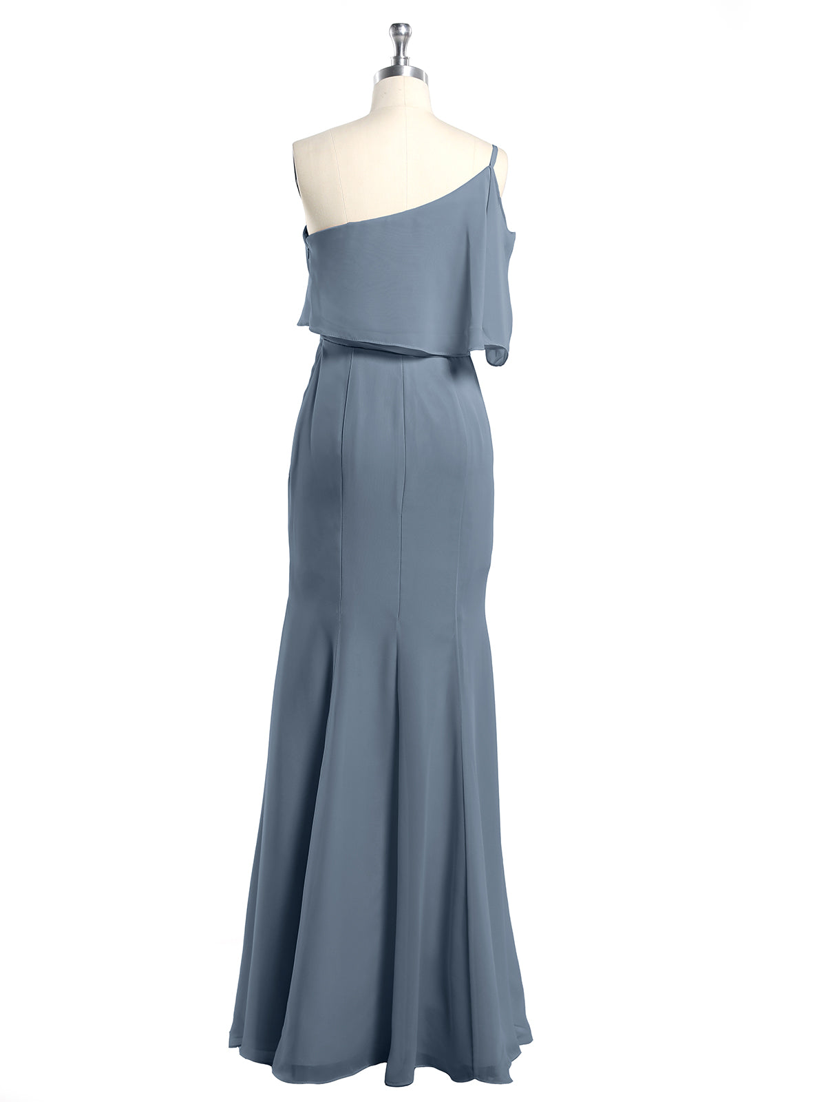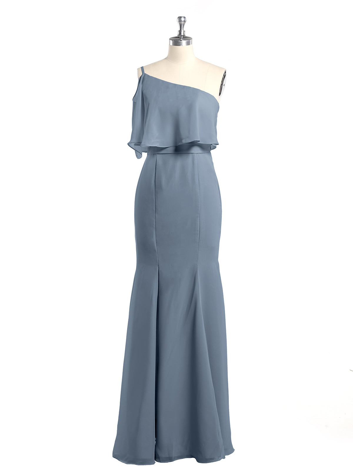 One Shoulder Mermaid Dresses with Slit Dusty Blue