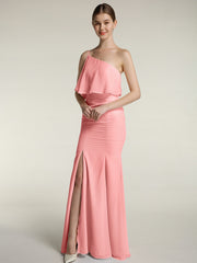 One Shoulder Mermaid Dresses with Slit Flamingo Plus Size
