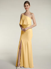 One Shoulder Mermaid Dresses with Slit Gold Plus Size