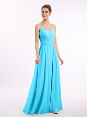 Spaghetti Strap Sweetheart Neck Chiffon Dress Pool Plus Size