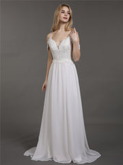Spaghetti Strap Chiffon Simple Wedding Dress-White
