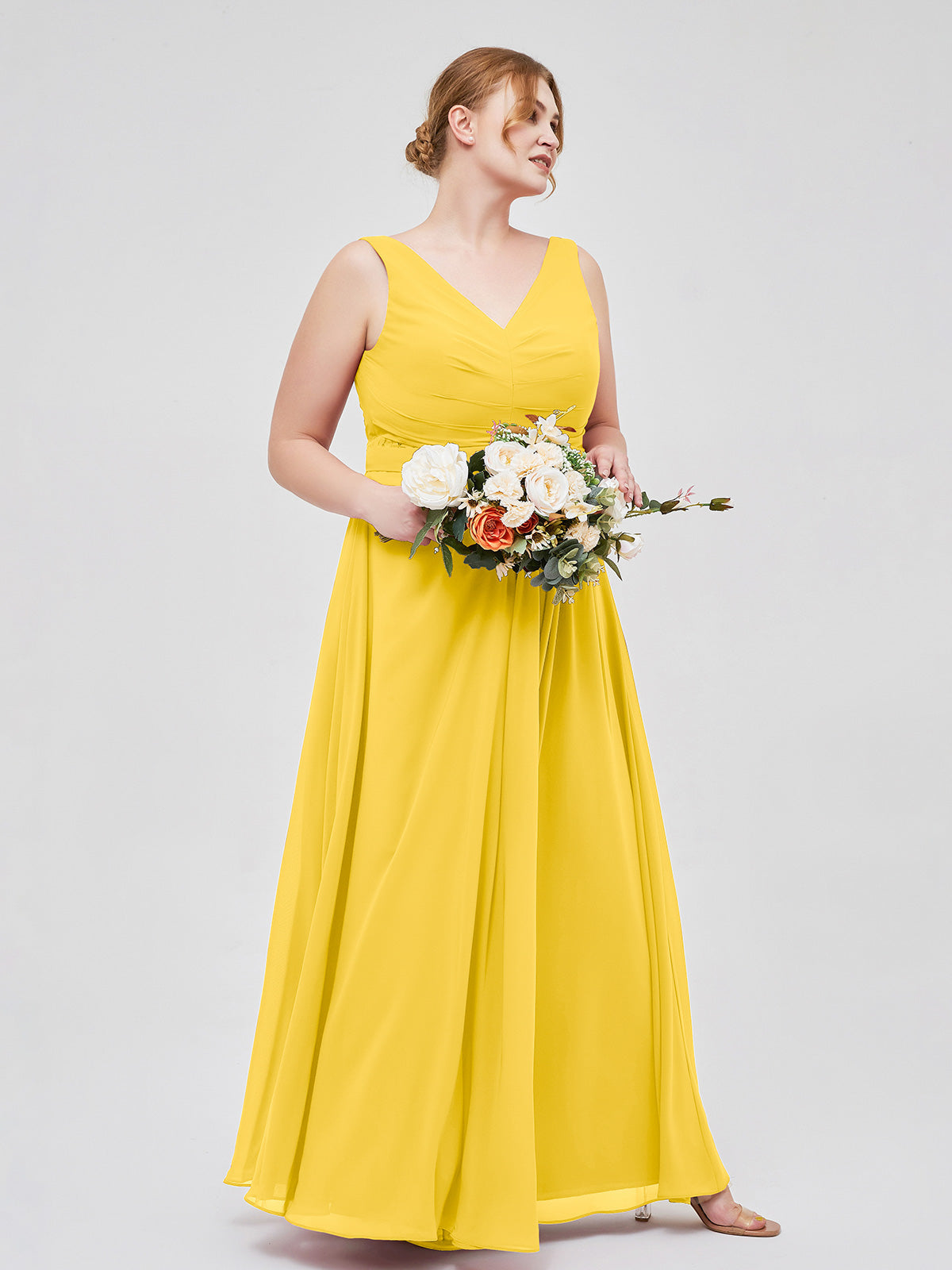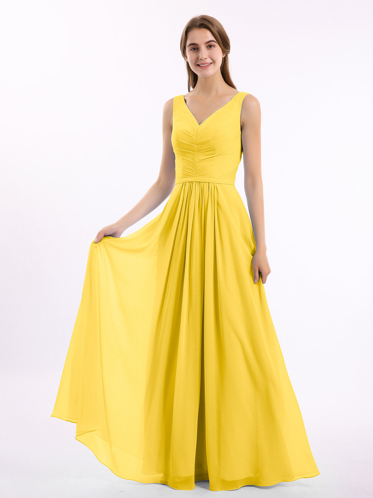 V-neck Chiffon Long Dress of Bridesmaids Marigold