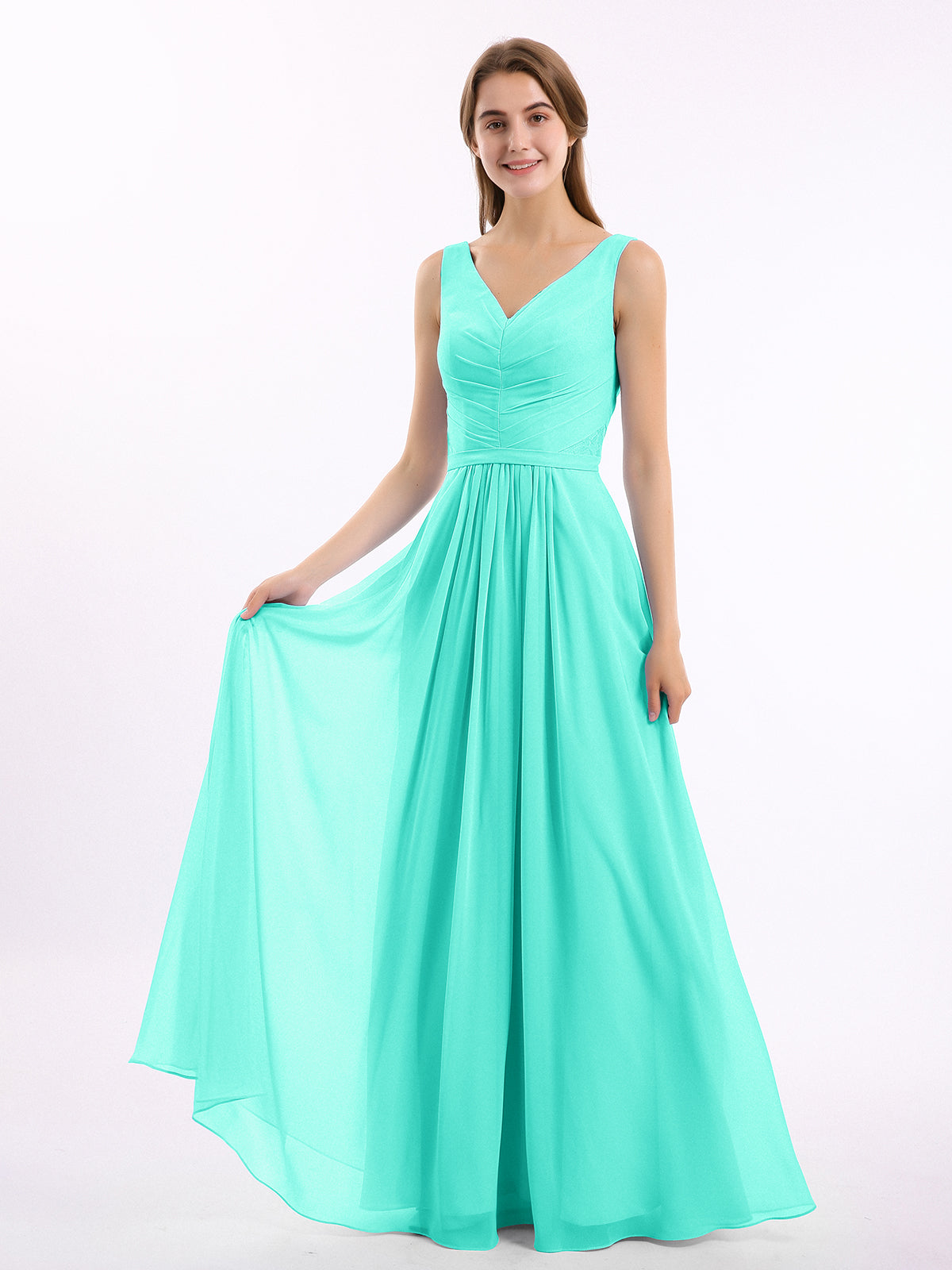 V-neck Chiffon Long Dress of Bridesmaids Spa