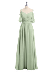 Spaghetti Strap Off Shoulder Chiffon Dresses Dusty Sage