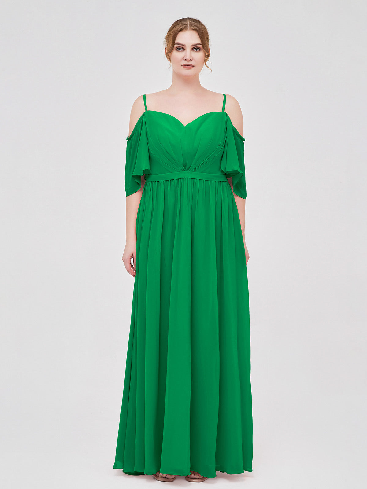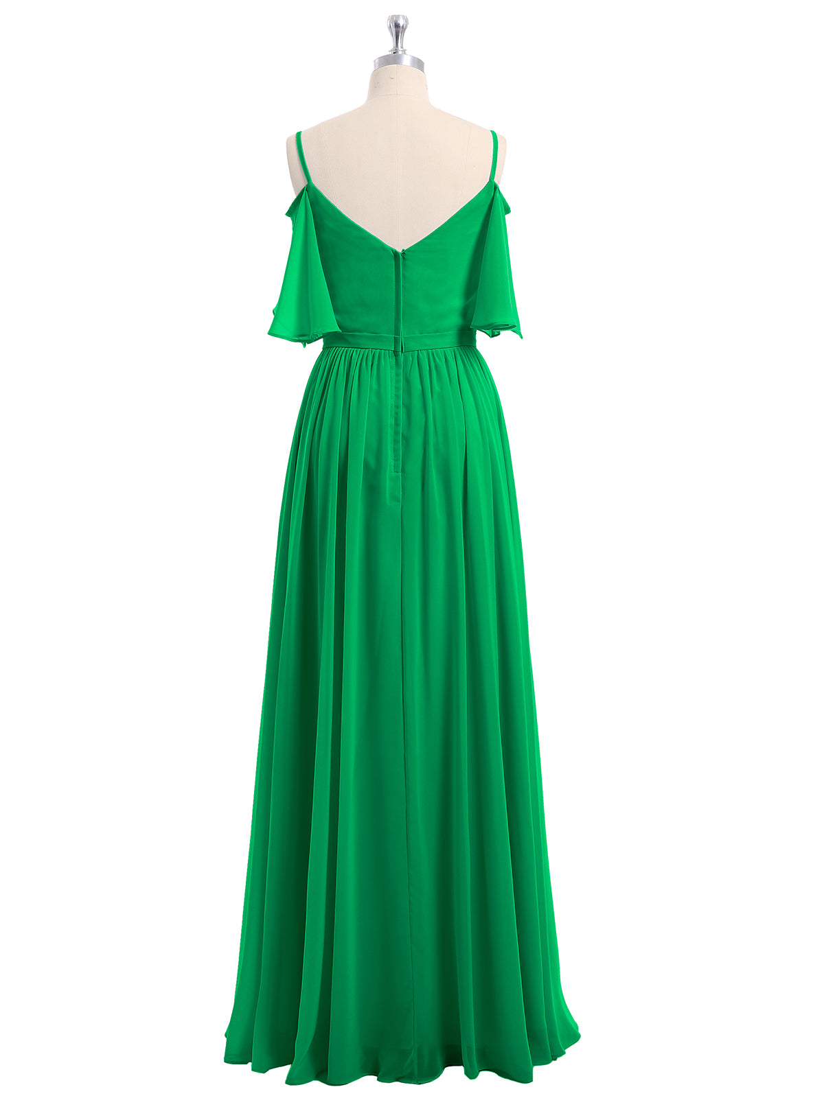Spaghetti Strap Off Shoulder Chiffon Dresses Emerald