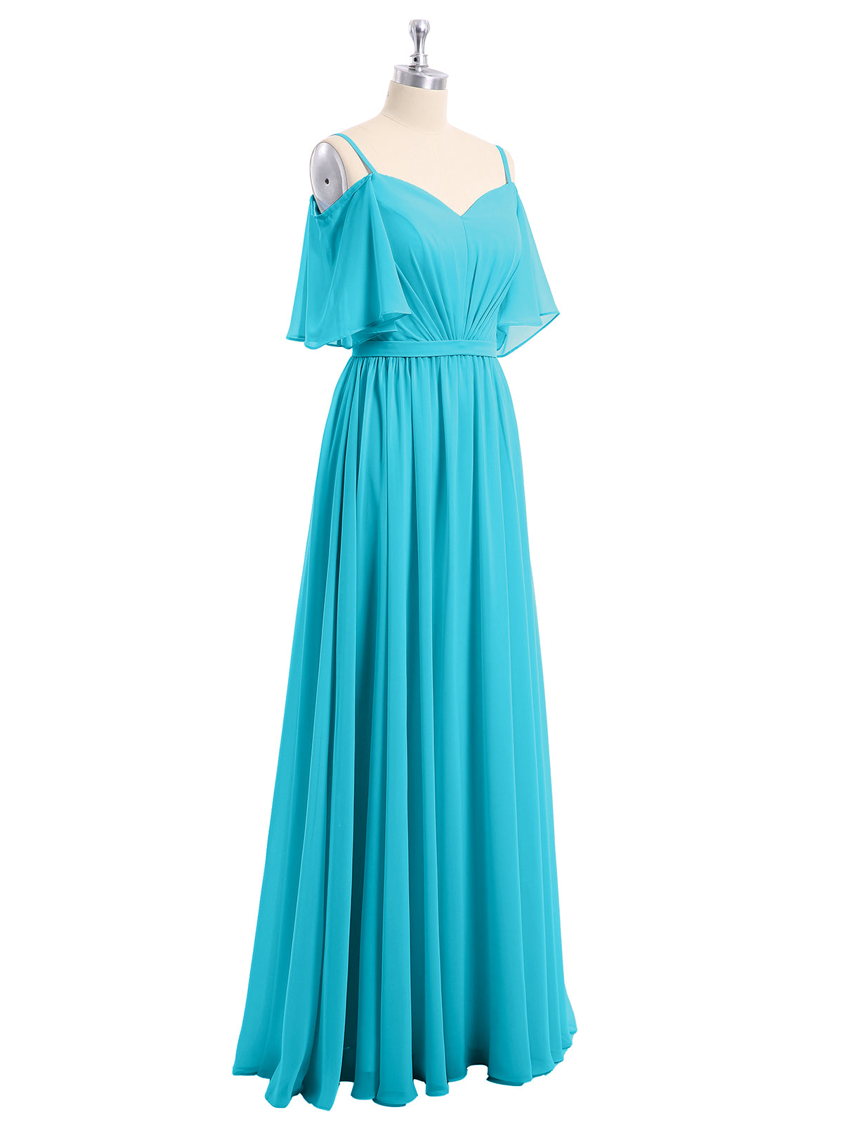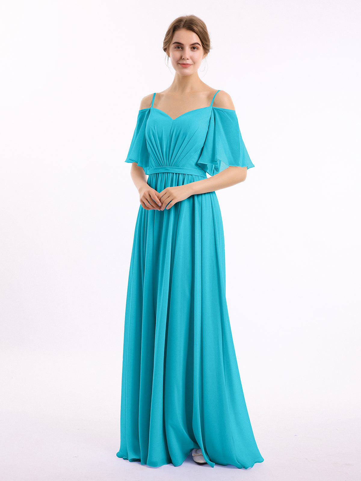 Spaghetti Strap Off Shoulder Chiffon Dresses Jade