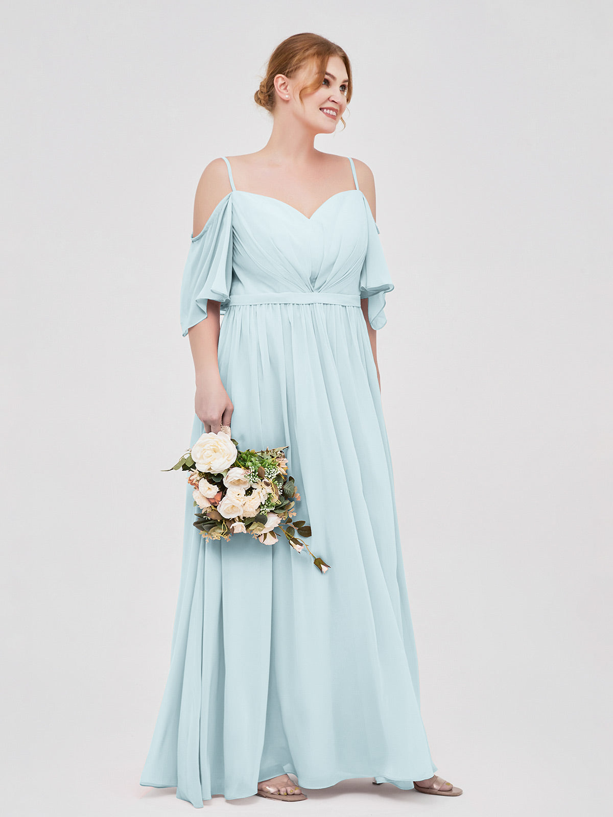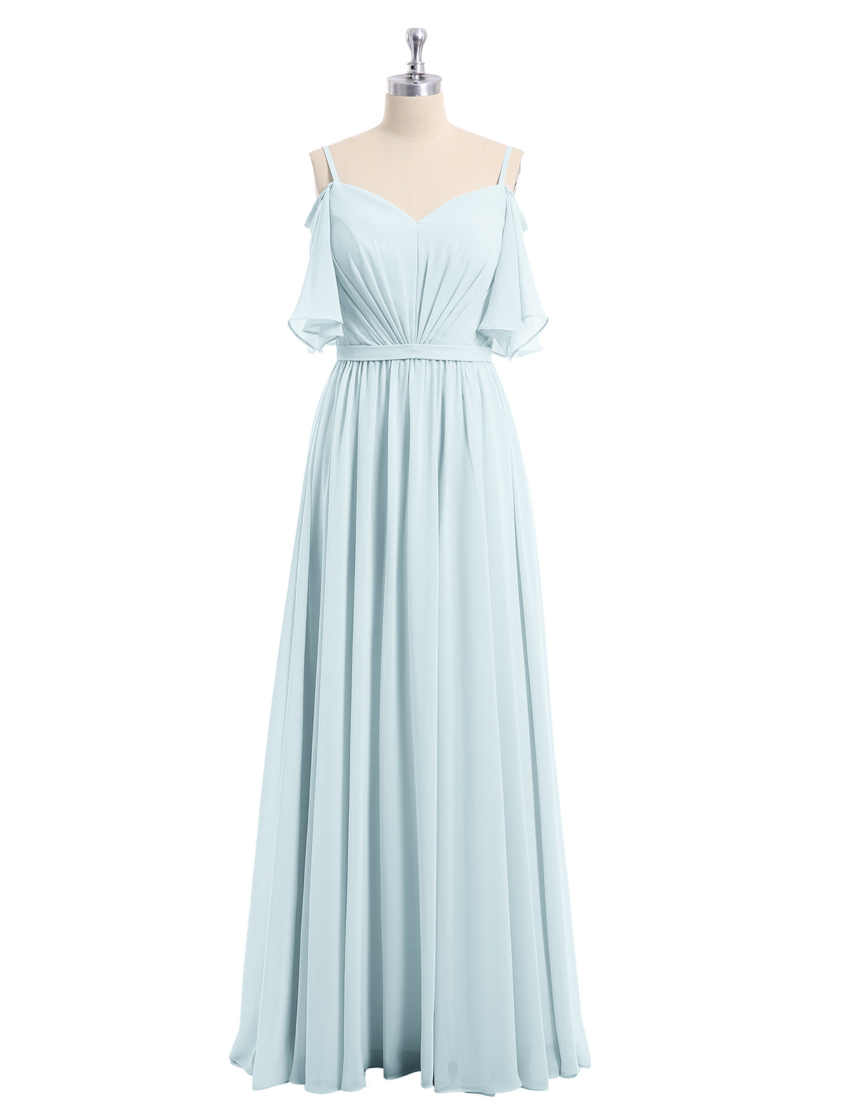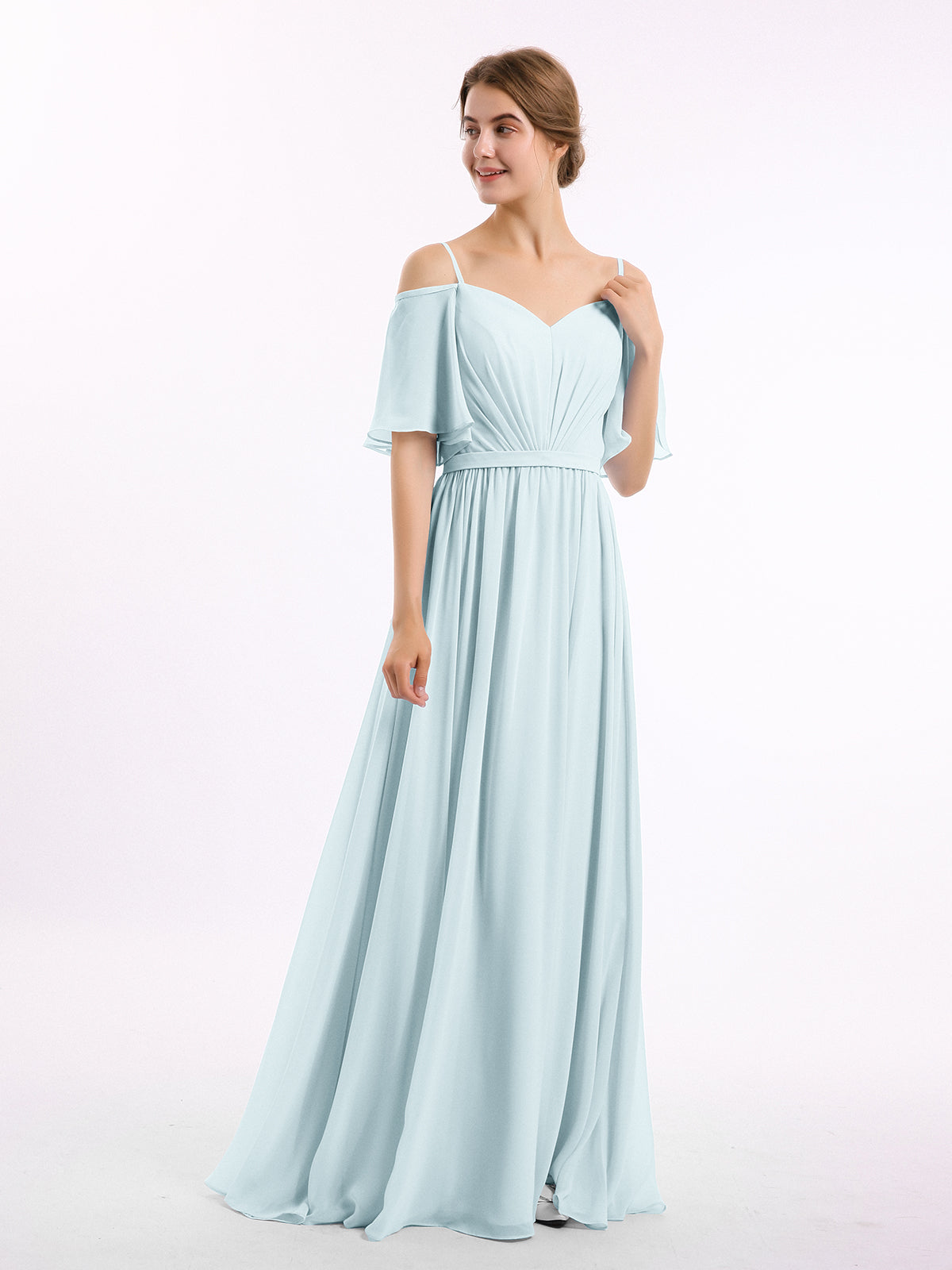 Spaghetti Strap Off Shoulder Chiffon Dresses Mist
