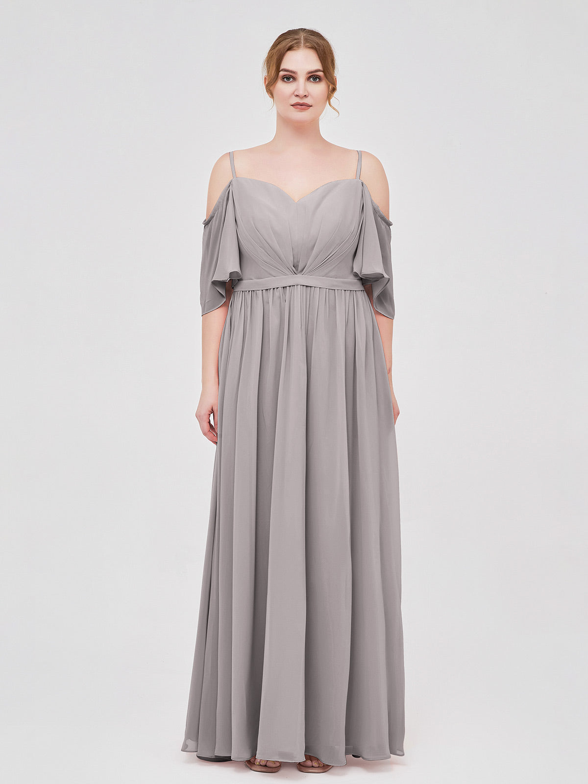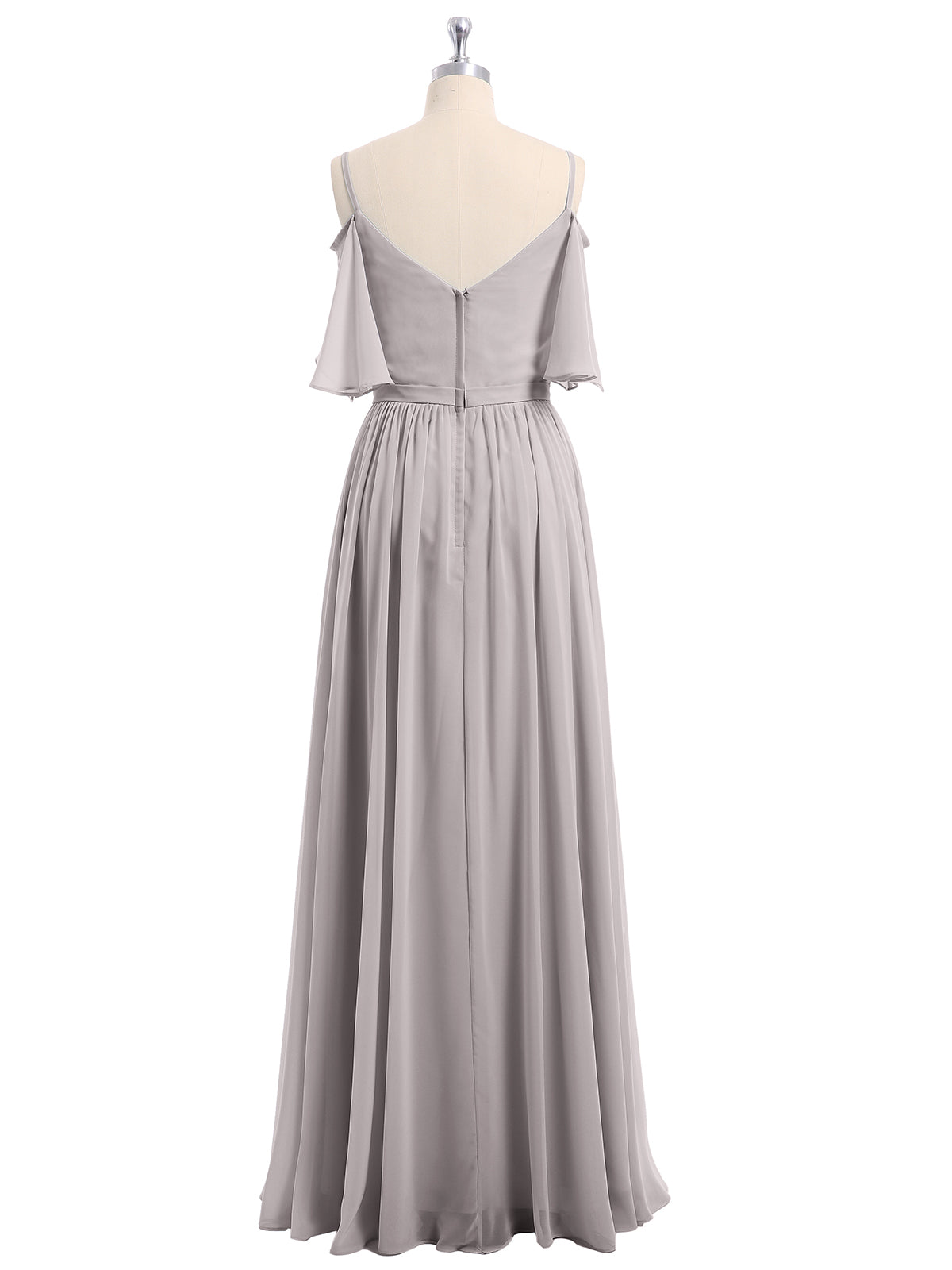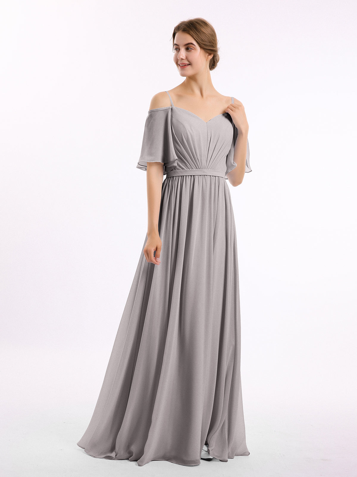 Spaghetti Strap Off Shoulder Chiffon Dresses Silver