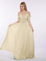 Spaghetti Strap Chiffon Dress with V-neck-Champagne