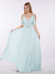 Spaghetti Strap Chiffon Dress with V-neck-Mist