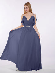 Spaghetti Strap Chiffon Dress with V-neck-Stormy
