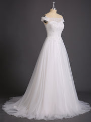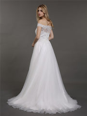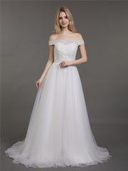 Off the Shoulder Lace and Tulle Wedding Gown-Champagne
