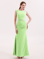 Chiffon Sheath Dress with Beaded Waistband-Sage