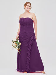 Strapless Sheath Chiffon Dress with Ruffles-Grape