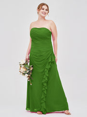 Strapless Sheath Chiffon Dress with Ruffles-Moss