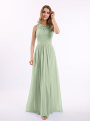 Lace And Chiffon Long Gown of Bridesmaids-Dusty Sage