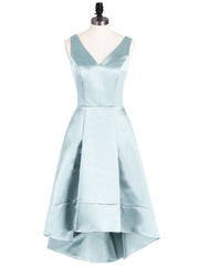 V-neck Satin High Low Bridesmaid Dresses-Mist