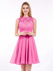 Illusion Neck Chiffon and Lace Dress-Azalea