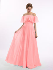 Off the Shoulder Chiffon Full Length Dress-Flamingo