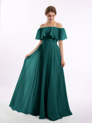 Off the Shoulder Chiffon Full Length Dress-Peacock