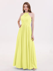 Chiffon Maxi Halter Dress with Lace Bodice-Daffodil
