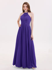 Chiffon Maxi Halter Dress with Lace Bodice-Regency